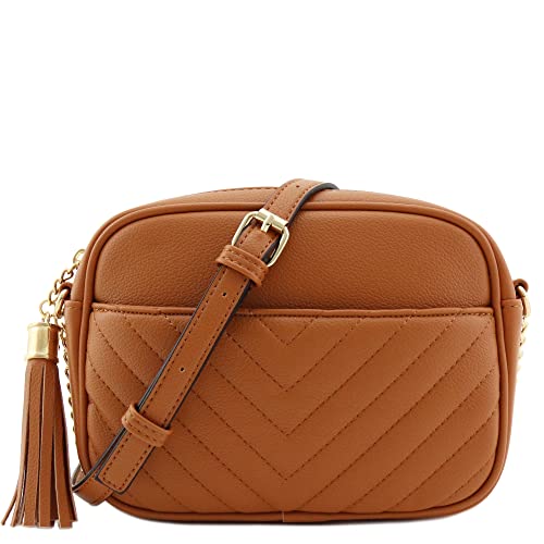 Home » Purses » FashionPuzzle Chevron Quilted Crossbody Camera Bag with Chain Strap and Tassel (Tan)