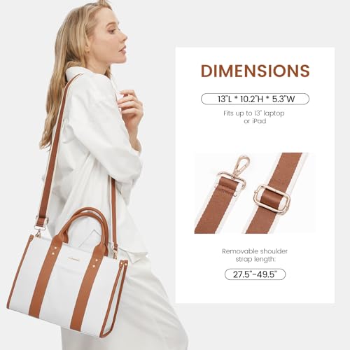 LOVEVOOK Tote Bag for Women Canvas Purse and Handbags, Satchel Shoulder Crossbody Top Handle Bags with Zipper, White-Brown