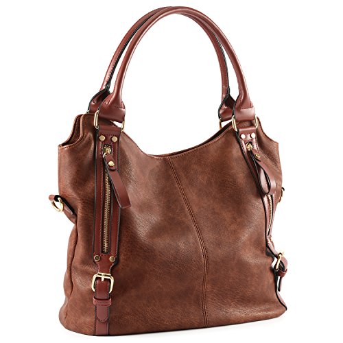 Plambag Women Faux Leather Hobo Handbag Large Tote Purse(Coffee)