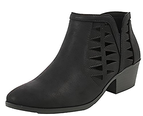 Soda Women’s Perforated Cut Out Stacked Block Heel Ankle Booties