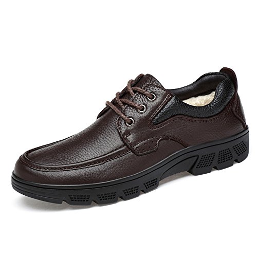 Hilotu Classic Shoes for Men’s Fashion Oxford Casual Soft Aseismatic Light Belt Outsole Formal Shoes(Warm Velvet Optional) (Color : Warm Brown, Size : 10.5 D(M) US)