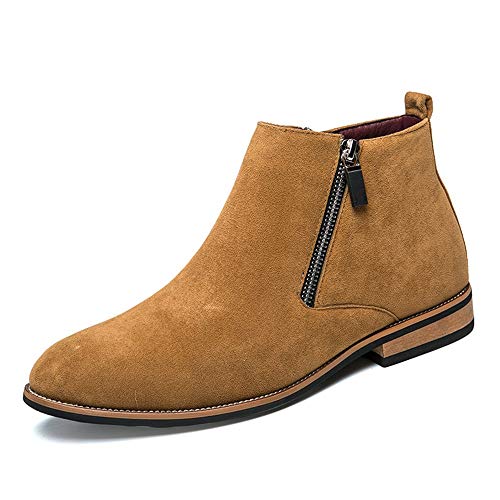 Hilotu Clearance Men’s Fashion Ankle Boots Flat Heel Side Zipper Decoration Suede Vamp Solid Color Shoes (Color : Brown, Size : 8 D(M) US)