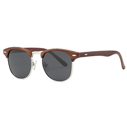 AEVOGUE Polarized Sunglasses Semi-Rimless Frame Brand Designer Classic AE0369 (Brown Woodgrain&Black, 48)