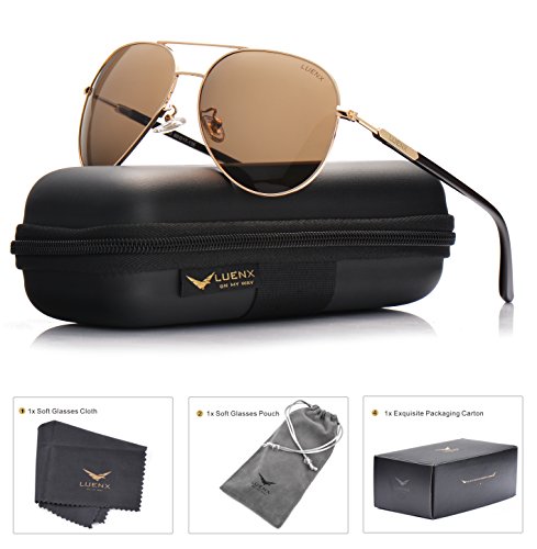 LUENX Aviator Sunglasses Mens Womens Polarized Brown Lens Gold Metal Frame Large 60mm