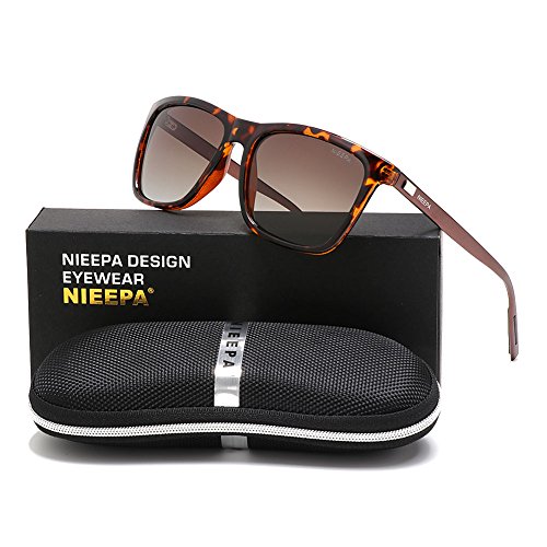NIEEPA Rectangular Polarized Sunglasses AL-MG Frame Retro Driving Sun Glasses (Brown Lens/Leopard Frame)