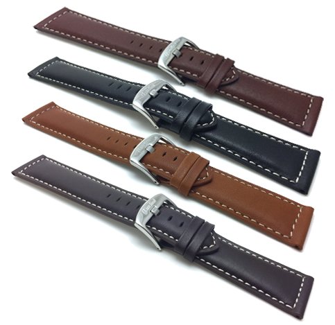 18mm to 30mm, Genuine Leather Watch Band Strap, Mat Finish, White Stitching, Comes in Black, Brown, Tan and Light Brown 18mm to 30mm, Genuine Leather Watch Band Strap, Mat Finish, White Stitching, Comes in Black, Brown, Tan and Light...
