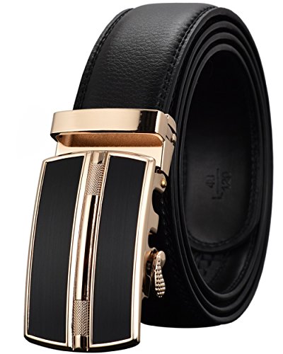 Falari Men's Genuine Leather Ratchet Dress Belt Automatic Sliding Buckle. Custom size trim down the strap to your exact waist size. Quality Guarantee. Simple Style Suitable for Business and Leisure Designed & Created Care by Falari IncHigh...
