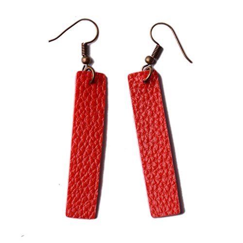Both sides are same color, no felt, Length is about 2 5/8", Width is about 3/8". >>Textured PU Leather Bar Earrings 2 Pair Pack.>>Both sides are same color, no felt.>>Light Weight, Various colors for Selection.>>Choice for Birthday, Anniversary,...
