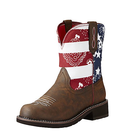 Heritage pride is on full display throughout this western boot, including a fun pattern that is revealed underfoot. Pull-on Western boot featuring American flag overlay at shaft and striped...