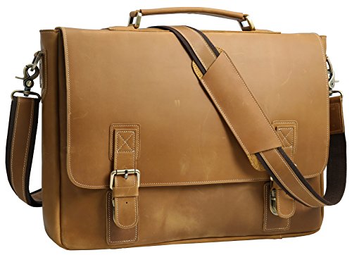 Material: Top vintage oil wax leather imported from Italy, which is made of genuine cow leather. Durable and soft fabric lining, with silver Hardware. All these highlight the high quality and classic design of this briefcase.Dimensions: ?L)...
