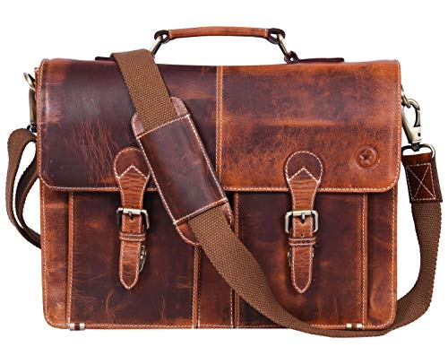Premium Quality - Handcrafted by artisans with 100% genuine leather & high quality cotton lining, this leather messenger bag is a perfect companion for your personal & professional needsDimensions - 16" (Length) x 12"(Height) x 4"(Depth)Spacious...