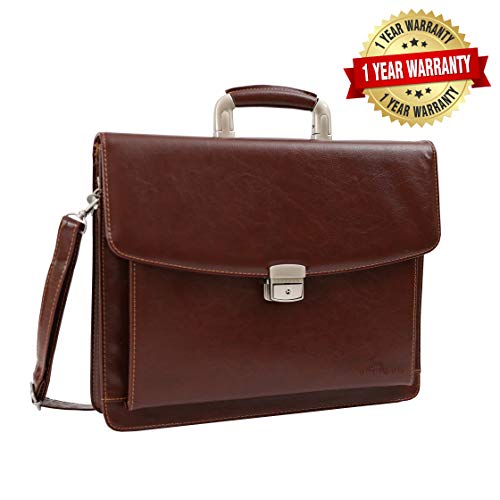 Keep your business essentials well organized and put together with the Deerlux Brown Faux Leather Briefcase. This large-capacity briefcase has two large inner compartment for books, binders, and laptop computer. Two smaller pockets are perfect for...