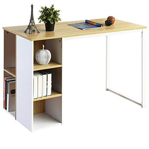 Thank you for visiting our oak wooden style office computer writing desk with metal legs. This is your perfect productivity companion. This office computer writing desk combine a large working surface, sturdy material and generous storage shelves...