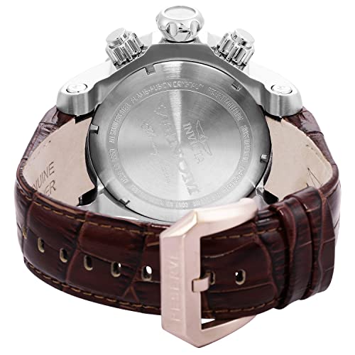 Click for More Images Precise Swiss-quartz movementDurable flame-fusion crystal; polished stainless steel case; brown leather strapChronograph functions with 60 second, 30 minute and 1/10th of a second subdials; date functionSilver dial with rose...