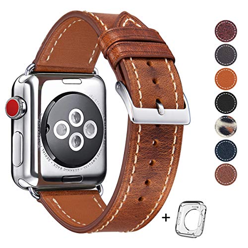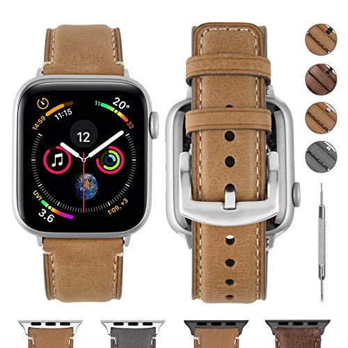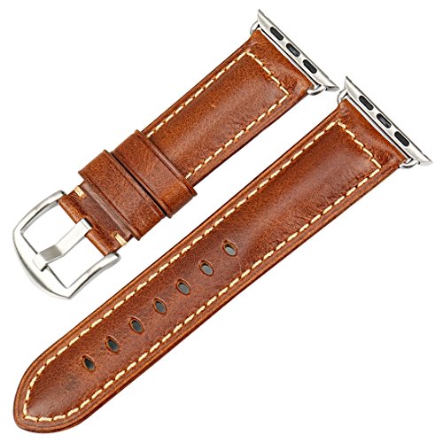YQI Luxury Replacement Band Strap for 38mm Apple Watch Series 1 and Series 2 in Light Brown with Black Adapter The Band Fits for Apple Watch 2015 & 2016 all models in 38mm Features 1. This watch band is made of genuine leather, and you can see...
