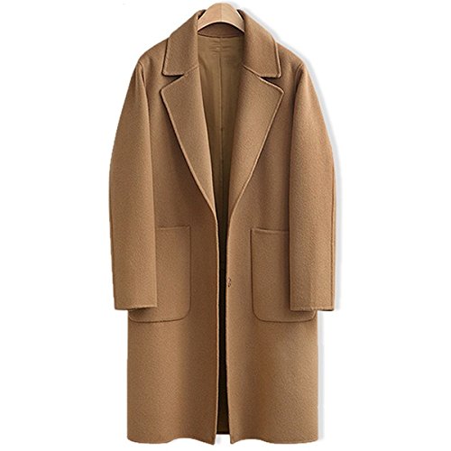 Classic notched lapel, long sleeveFront snap button up closure, single breasted placketMid Length wool blend coat with 2 hand pockets at side for storageSolid color: black/ khaki. Sui for both casual and work wear in daily lifeMade in China and...