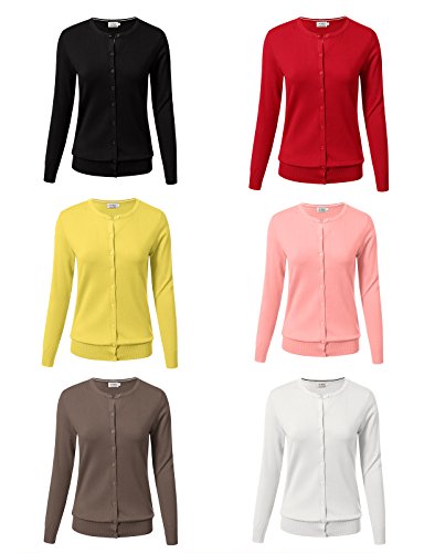 Cowear Women's S-3XL Solid Button Front Knitwears Long Sleeve Casual CardigansFor a chilly fall day, an air-conditioned office or an overheated room, you'll be glad to have this women's botton down cardigan within reach. With a longer length that...