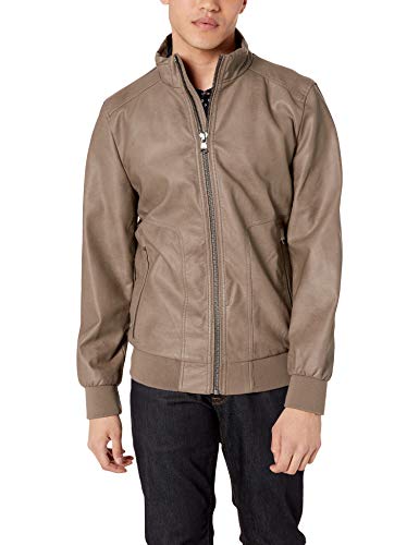 Featuring a hooded sweater lining with zipper entry and mock neck design, this Calvin Klein faux leather jacket brings a stylish, confident look to any wardrobe. The hooded jacket offers four exterior pockets. Faux leather jacket with full zip...