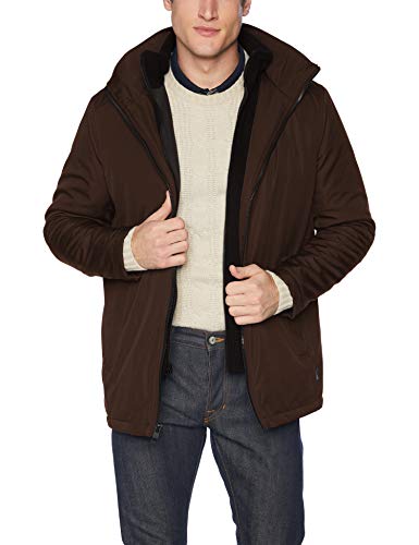 Calvin Klein hooded zip front jacket with inner fleece bib Open bottom, zip front, zip through collar, open cuffs, single entry hand pockets with zipper closureInner fleece bib with zip front, detachable hood with fleece lining, interior pockets,...