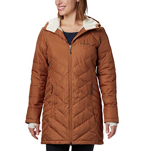 Contoured torso seams give the Heavenly™ Long Hooded Jacket a sleek profile and trim fit. Geometric stitching patterns on the water resistant shell create a strong design aesthetic. And the full-zip front with extended hem design and SCUBA style...