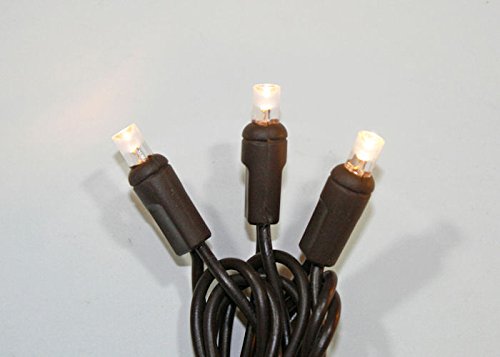 100 warm white LED bulbs, spaced 4" apart 7 Watts per string 33.5 feet long includes male and female plugs (can connect end-to-end) 22 gauge brown wire Energy-saving eco-friendly, only consumes 7 Watts per stringLong-lasting plastic bulbs do not...