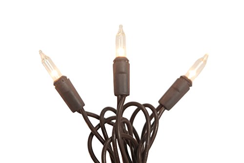 Features: Color: clear bulbs / brown wire Number of bulbs on string: 20 Bulb size: mini Spacing between each bulb: 2.5" Lighted length: 3.9' Total length: 4.9' 12" lead cord Additional product features: Super bright bulbs If one bulb burns out,...