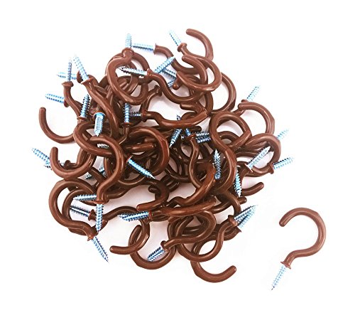 Vinyl coated cup hooks/ ceiling hooks Pack of 50 Color: brown Material: vinyl+metal Size: Total length: 47mm Width: 25mm Open mouth: 13mm Vinyl coated hook length: 32mm Screw length: 15mm Easy installation 1-1/4" vinyl coated cup hooks/ ceiling...