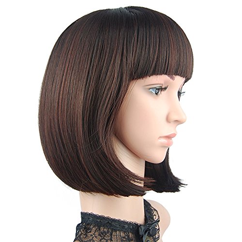 eNilecor Short Bob Hair Wigs 12" Straight with Flat Bangs High Quality Synthetic Colorful Cosplay Daily Party Wig for Women Natural As Real Hair eNilecor offer the good quality wig, our wig made by the100% high-temperature resistance synthetic...