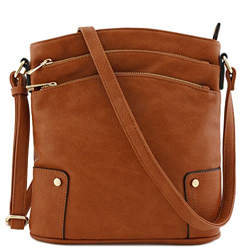 This multi pocket large size crossbody bag makes easy to organize your everyday items. 10.5" (W) x 11" (H) x 2.75" (D)Zipper closureAdjustable shoulder strap with 24" dropFaux leather & gold tone hardware1 zipper pocket & 1 open pocket...