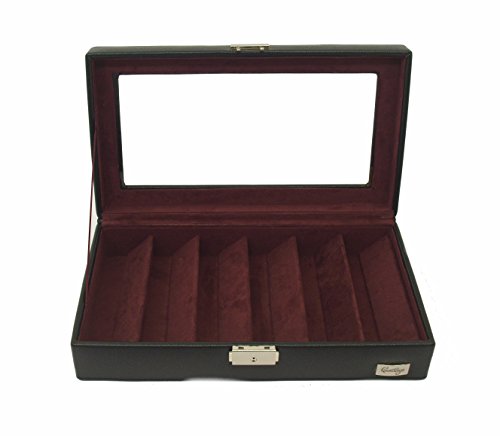 Cordays - Handmade 6 Piece Glasses Storage and Display Box with Top Glass Lid in Black Leatherette CDM-00027P HANDCRAFTED: Handmade in high quality Saffiano Leatherette with a soft velvety lining and an elegant jacquard interior. DIMENSIONS: 12.7...