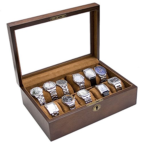 This quality single level unique vintage wood finish watch storage display case will protect your watch collection from dust and beautifully display your classic timepieces through its clear viewing top. The watch case interior is lined with soft...