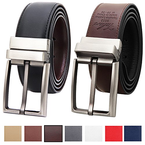 Falari Men's Classic Dress Belt Reversible Genuine Leather Belt Enclosed in a Gift Box. Custom size trim down the strap to your exact waist size. Quality Guarantee. Simple Style Suitable for Business and Leisure Designed & Created Care by Falari...