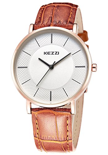 The basic brown-gold-white design of the Kezzi Men's Analog Classic Watch makes it a simple, versatile timepiece great for everyday wear. The watch is constructed with a gold ultra-thin stainless steel case ,a gold stationary bezel, a gold...