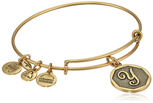 Handmade bangle bracelet crafted from recycled material featuring initial pendant and three stamped Alex and Ani charms. Alex and Ani's patented expandable wire bangle concept allows the wearer to adjust the bangle for a perfect fit. Expandable...