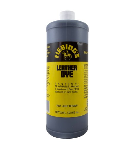 Fiebing's light brown leather dye is an alcohol based, permanent, penetrating leather dye used for the coloring of vegetable tanned or naked finished leather. Dries uniformly and mixes easily with other Fiebing's alcohol dye colors to create...