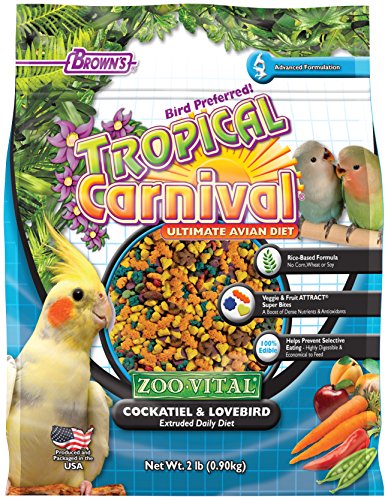Brown's tropical Carnival zoovital Cockatiel & lovebird advanced extruded daily diet provides superior, healthy nutrition in every bite. Seed based diets allow birds to be selective eaters and miss out on key nutrients. Since 100% of each pellet...