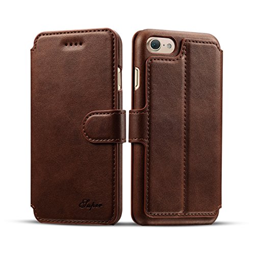 XRPow iPhone 8 Plus Wallet Case, iPhone 7 Plus Case Leather Folio Stand Case With Credit Card Holder Compatible with Apple iPhone 8 Plus and iPhone 7 Plus 5.5inch Lightweight, Thin and Classic Handmade Design: Ultra slim folio type case to...
