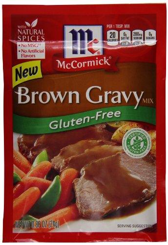 McCormickGluten-Free Brown Gravy gives your family an indulgent treat you can feel good about. Made with McCormick spices, this gluten-free blend doesn't contain MSG or artificial flavors or colors, so you can pour it over mom's famous meatloaf or...