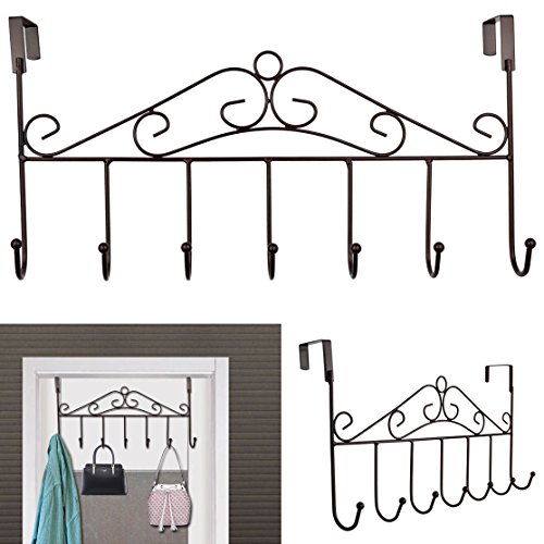 Rbenxia Over the Door Hanger Rack – Decorative Metal Hanger Holder for Home Office Use 7 Hooks Brown