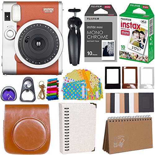 Fujifilm Instax Mini 90 Instant Film Camera Bundle Includes Fujifilm instax mini 90 Camera (Brown) Fujifilm instax mini 8 instant film Twin pack (20 SHEETS) Fujifilm Instax Mini 90 Shoulder Strap Fujifilm Instax mini 90 Rechargeable Battery...