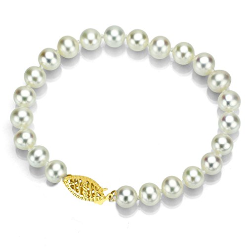 This is A Gorgeous and Elegant 14k Yellow Gold 6.5-7mm Handpicked AAA White Akoya Cultured High Luster Pearl Bracelet. This bracelet is hand-knotted, and secured with a fish-hook clasp. Perfect to Wear for All Occasions. We Carry Different Kind of...