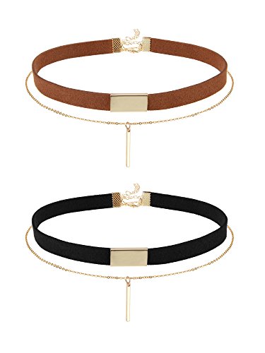 Mudder 2 pieces velvet choker necklace gold bar pendant chain choker double layer choker for women girls, black and brown Features: Simple and fashionable: Double layer choker with metal bar pendant is beautiful and elegant, wear a special...