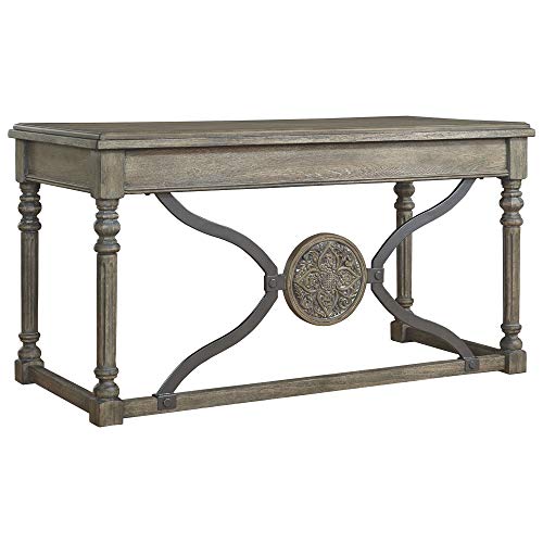 Traditional style with a twist. Merging a richly complex patina wood-tone finish with a bent metal, the Malamae desk wows with an aesthetic all its own. Turned and fluted legs create such a substantial look and feel. Marvelous medallion adds a...