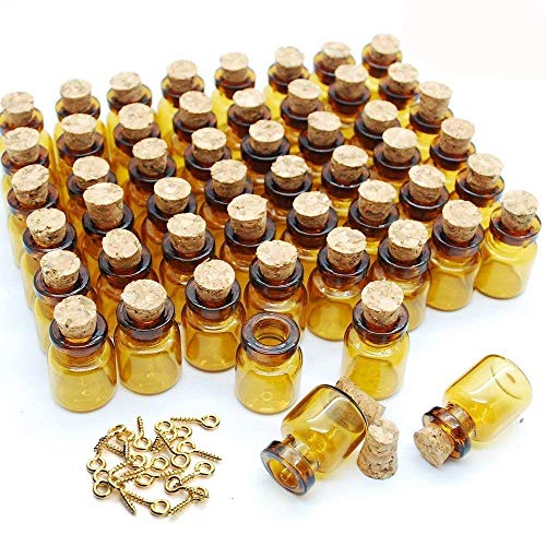 ?Material: Glass,Wooden Stopper,Metal?Color: Dark Brown/Amber ?Capacity: 0.5-0.6 ml.?Size: 22mm Height x 11mm Bottle bottom x 6mm Bottle top?Package Included:50Pcs mini Dark Brown Glass Bottles;50 Pcs Eye Screws;50 Pcs Corks StoppersJKLcom 0.5 ML...