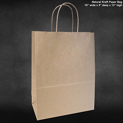 95% POST CONSUMER MATERIALS & FSC CERTIFIED Durable Kraft paper material. Twisted paper/rope style handle. 10" wide x5" deep x 13" high (handle not included in overall size) Brown Kraft Paper Bags , Gift Bags, Wedding Bags, Retail Bags,...