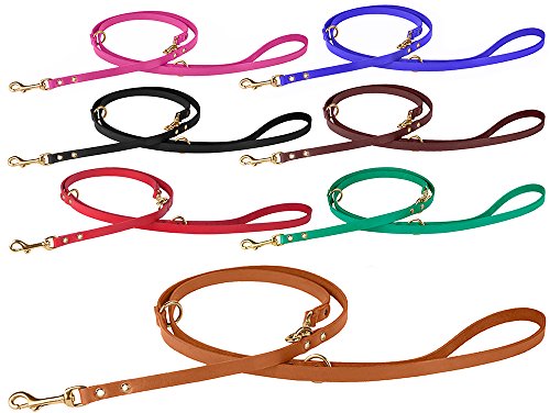 This is a classic multi purpose dog leash that can be used in multiple ways and variety of length - 4, 5 or 6 ft, from short traffic leash, training dog leash, every day leather dog or puppy leash to a two dog leash and split or coupler leash. Get...