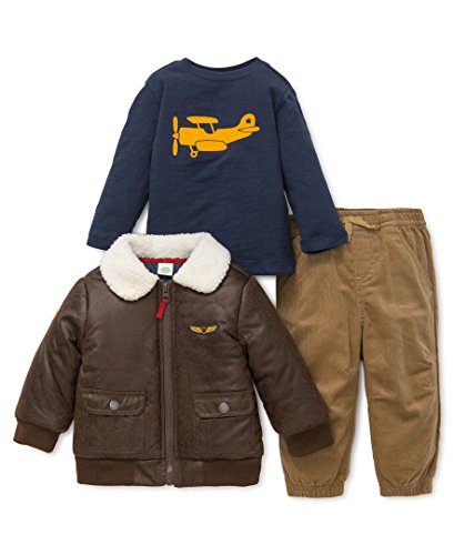 This three-piece baby boys' outfit saves the day with a comfy long-sleeve cotton top, corduroy pants and a soft aviator-style jacket. 3 piece jacket setAvailable in infant and toddlerLittle MePull on knit...