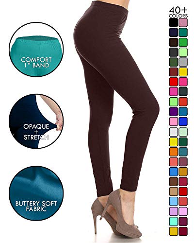 Leggings Depot Ultra Soft Basic Solid Plain Best Seller Leggings Pants (One Size (Size 0-12), Brown)