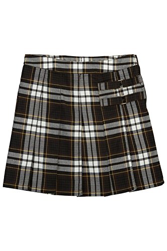 Made for the active girl with built-in shorts, this school staple gets updated with preppy plaid and side buckles. Above the knee. 100% Polyester50 Wash Tested Shrink & Fade ResistantAdjustable Waist For Great FitDecorative Tab Detail With Bright...