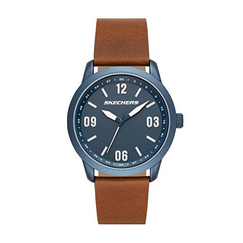 The Skechers Cordary watch offers style at every hour with a blue sandblasted case and matching dial, brown genuine leather strap and quartz analog three-hand movement. 43mm case, 22mm band width, mineral crystal, Quartz movement with three hand...